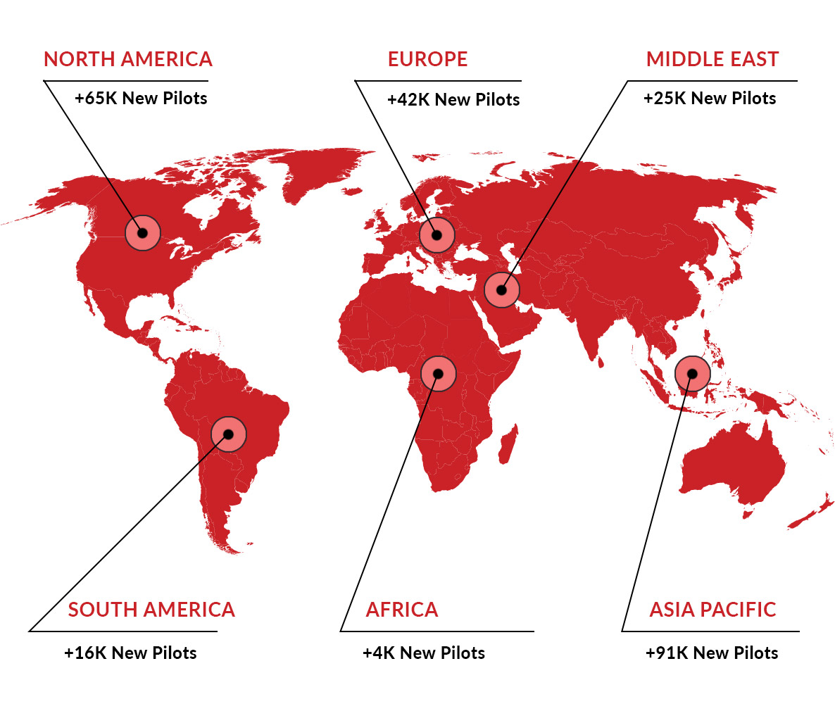 Despite the short-term decline in the number of active pilots, analysis shows that the civil aviation industry will require more than 260,000 new pilots over the next decade. As air travel resumes progressively over the next several years, the industry will experience upward mandatory retirement and attrition rates